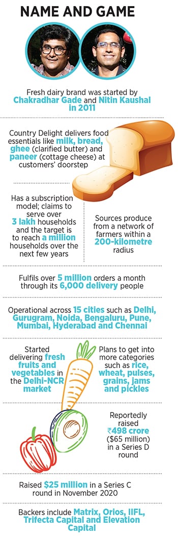 The heady growth comes on the back of a rising number of users. Working on a subscription model, Country Delight claims to serve over 3 lakh households and fulfils over 5 million orders a month through its 6,000 delivery guys. Though it started with milk, which still forms a chunk of its revenues, Country Delight added more products to its basket, such as bread, bakery, ghee (clarified butter), paneer (cottage cheese), yogurts, and healthy shakes. The brand, Gade informs, has started delivering fresh fruit and vegetables in the Delhi-NCR market, and plans to get into multiple categories such as rice, wheat, pulses, grains, jams and pickles.