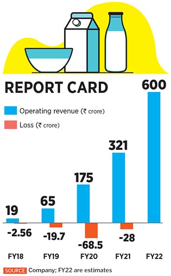 The reason behind the ₹600-crore smiles of the founder and the funder is not difficult to decode, though. From ₹19 crore in operating revenue in FY18, Country Delight jumped three times to log in ₹65 crore in the next fiscal, and pole-vaulted to ₹175 crore in FY20. The rapid pace continued after the pandemic. From ₹321 crore in FY21, the brand is likely to end FY22 at ₹600 crore. Country Delight has reportedly raised ₹498 crore ($65 million) in a Series D round, which is yet to conclude, and counts Matrix, Orios, IIFL, Trifecta Capital and Elevation Capital among its backers.