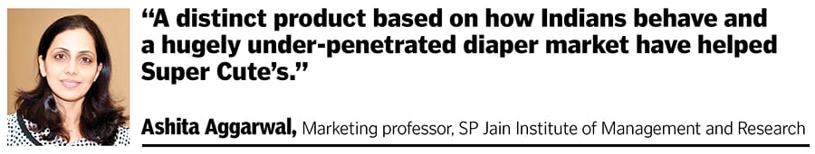 The marketing and branding experts, though, are not surprised. “The market was ripe for disruption," reckons Ashita Aggarwal, marketing professor at SP Jain Institute of Management and Research. The reasons were many. First, diaper penetration in India is still under 10 percent. Compare it with countries like China where it is over 50 percent. Diapers are still largely confined to tier 1 and 2 cities. “Imagine how big the market would be if it goes deep and wide across the country," she says. Super Cute’s’ strong offline markets across Uttar Pradesh, Maharashtra, Bihar, Rajasthan, Punjab, Madhya Pradesh, West Bengal, Odisha and Uttarakhand attest to the fact that an aspirational Bharat is the right place for brands that can offer value-for-money as well as the features that they look for.