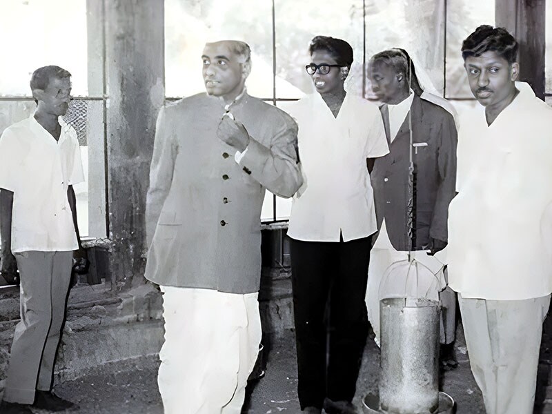 Shankar Rao (second from left), then animal husbandry minister of Karnataka, with Nanda Group’s PS Nanda Kumar (third from left) at a farm in the 1960sImage: Courtesy Nanda Group