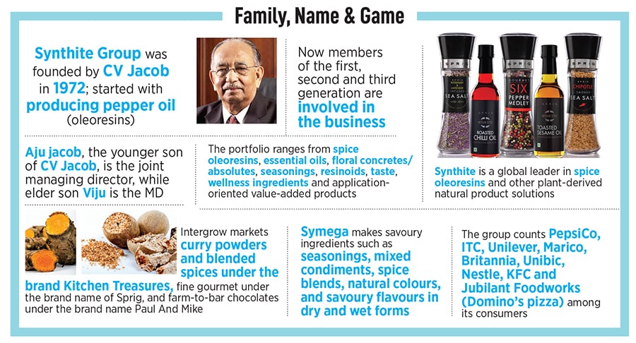 Aju Jacob starts the conversation by giving a simplified lowdown on the flavour of his family business. “If you crush black pepper in your hands, you get an aroma," explains the chemical engineer who joined Synthite Industries in 1987, a year after graduating. His father, CV Jacob, started Synthite in 1972 by extracting oil and resin from spices such as pepper. The aroma is due to the evaporation of the volatile essential oil, which is derived by crushing pepper. “It’s aromatic and has a slightly musty odour," says the 57-year-old joint managing director of Synthite Group, who has spent over three-and-a-half decades in the business.