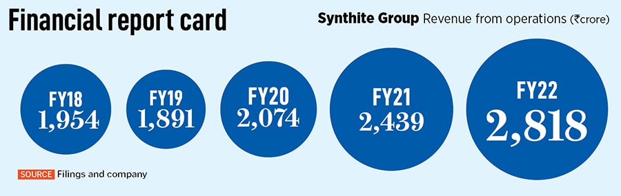 Fast forward to 2022. As the Blue Book completes a decade of its existence, the 40-year-old Synthite Group finds itself highly revitalised. The business has soared at an incredible pace: From ₹1,100 crore in 2013 to ₹2,817.88 crore in FY22, it has expanded its overseas reach and beefed up its domestic play, the third generation is getting ready to make bolder moves such as exploring the cannabis market in Canada, and from predominantly a B2B player, Synthite Group has taken rapid strides to grow its B2C business.