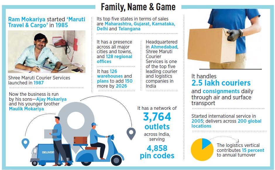 For Shree Maruti Courier, which had a small beginning in 1985, the journey to being one of the top five courier and logistics players in India has indeed been incredible. The company closed FY22 at an operating revenue of ₹501 crore it handles 2.5 lakh couriers and consignments daily through air and surface transport has a network of 3,764 outlets and 150 trucks across India, and counts Maharashtra, Gujarat, Karnataka, Delhi and Telangana among its top five states.