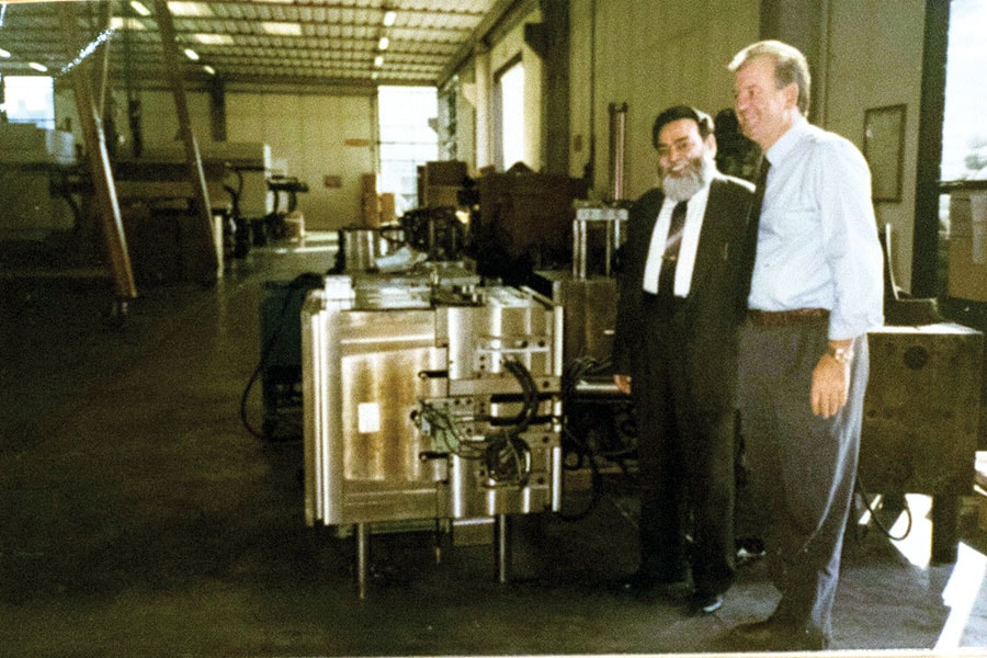 Subhash Kapur (left) at the Bieffe factory in Italy in 1995