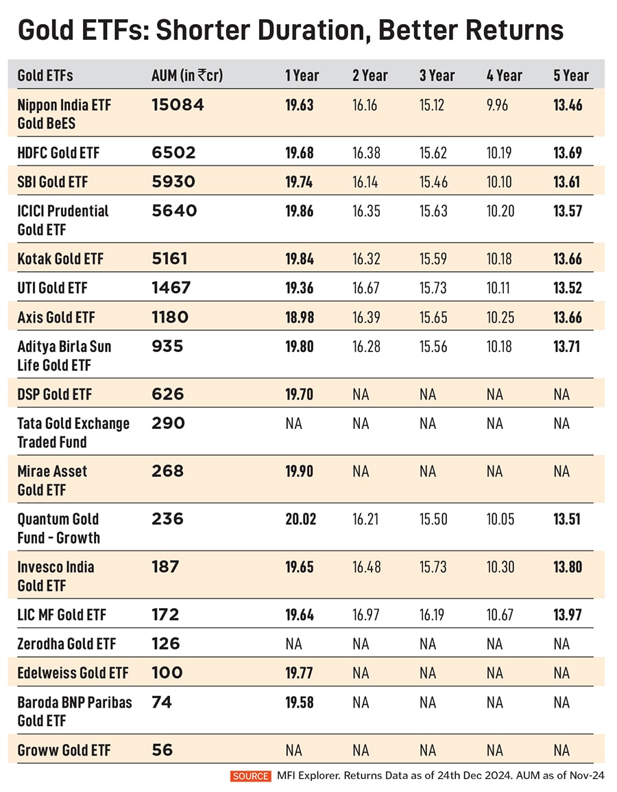 Both Dondapati and Chainwala say allocations towards investing in gold in 2025, whether as a pure yellow metal (bars, coins) or through ETFs or other investment avenues, should depend on their risk appetite and the time horizon they chose.
