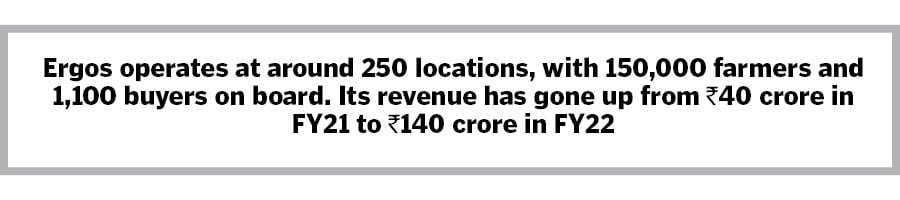 Ergos is present in 26 districts in Bihar and has also expanded to Maharashtra and Karnataka. They operate at around 250 locations, with 150,000 farmers and 1,100 buyers (including food processors, wholesalers and exporters) on board.