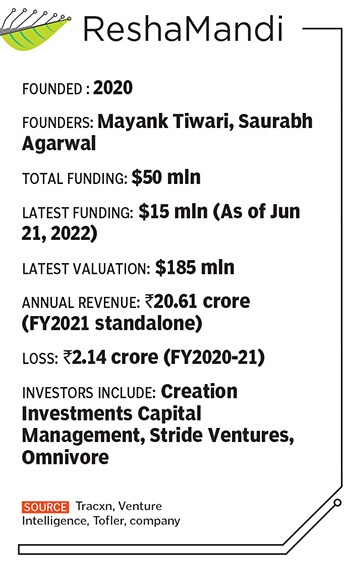 Having nailed down its different lines of business, growth is strong at ReshaMandi, the CEO says. Revenue went from ₹20 crore in 2019-20 to ₹450 crore in 2021-22. That last figure was matched in just the first quarter of the current fiscal year, he says.