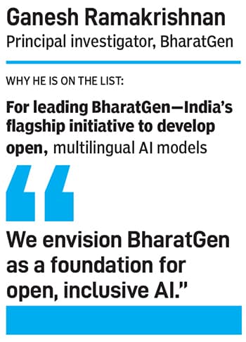 As the principal investigator of BharatGen—a government-backed effort, led by a consortium of top Indian institutions, to develop multilingual and multimodal generative AI models for India—Ramakrishnan is championing accessibility and inclusion in AI. With a deep background in machine learning and natural language processing, he has spent over a decade building data-efficient and compute-efficient technologies that bridge linguistic gaps and democratise AI access. “Our goal is to create foundational AI models that are inclusive, data-efficient, and representative of India’s rich linguistic, cultural and societal diversity," says Ramakrishnan.