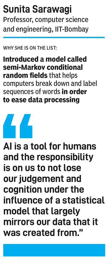 In a rapidly changing world where data meets intelligence, Sunita Sarawagi has been contributing with research, teaching and application of artificial intelligence (AI) in many technological ideas and processes that make the world easier for humans. As a professor of computer science and engineering at IIT-Bombay for the past 26 years, she has not only shaped minds but also institutions, founding the Centre for Machine Intelligence and Data Science at IIT-Bombay.