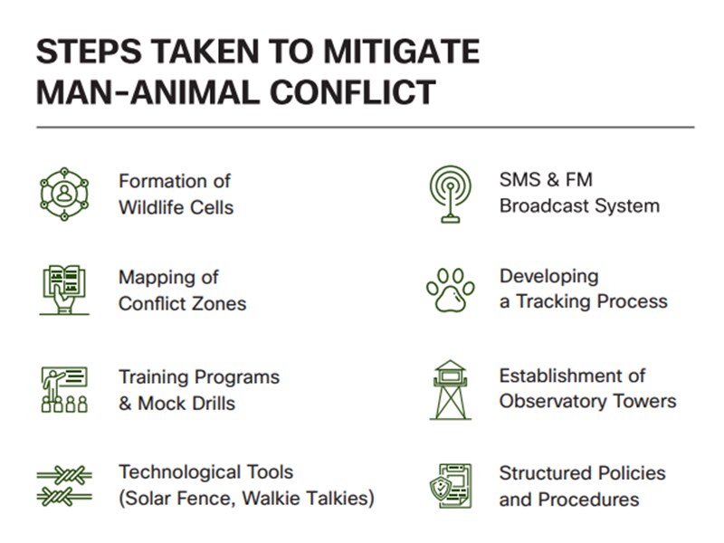 Recognising the gravity of the problem and realising that systematic planning and implementation of steps towards mitigation was important, TCL formed its Wildlife Cell in 2012. Given that it was important to learn from the experiences of others, partnerships were forged with external experts like the Indian Institute of Science, Pondicherry University, and NGOs like WWF-India, NCF, and so on. The focus was to analyse the problem to arrive at the root causes of the problems and to find comprehensive solutions. Clear mapping of the conflict zones was one of the most important and early steps in this effort.