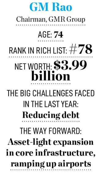 GM Rao, chairman of the eponymous GMR Group, makes a comeback to the Rich List on the back of a phenomenal rally on the bourses for two of his listed entities