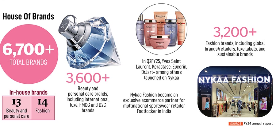 In FY24, Nykaa brought global brands such as Rihanna’s Fenty Beauty, Charlotte Tilbury, e.l.f. Cosmetics, CeraVe, Redken and Millie Bobby Brown’s Florence by Mills, among many others. “In this quarter, we’ve launched some global marquee brands—luxury brand Yves Saint Laurent and professional luxury haircare brand Kerastase, both owned by the L’Oreal group, a premium derma cosmetic skin care brand Eucerin, owned by the Beiersdorf Group, and Korean skin care brand Dr.Jart+ from the Estee Lauder Group," said Anchit during the analyst call.