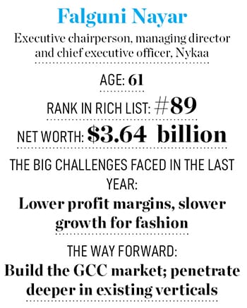 As per the Q2FY25 financials, Nykaa’s profit after tax (PAT) was up by 66 percent to ₹13 crore compared to Q2FY24. Revenue surged by 24 percent for the same time period—from ₹1,507 crore to ₹1,875 crore. The company turned profitable in FY21, and has been on that path ever since. Nayar has been one of the gainers on the 2024 Forbes India Rich List at rank 89, with a net worth of $3.64 billion.