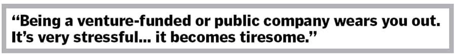 Being a venture-funded or public company wears you out. Many people report feeling like they’re on an endless financial treadmill. It’s very stressful.