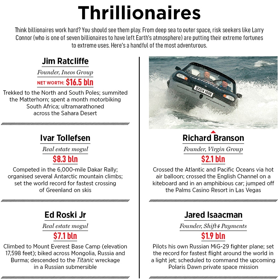 No matter what, Connor, 74, is not slowing down. A week after meeting Forbes, he jetted off to Florida and Indiana to inspect the firm’s properties there. He has some big adventures on the horizon, too. “If you think about land, sea and air, it’s not the land and it’s not the air," he says, hinting at his next one, to be revealed later this year. “When this gets announced, you’ll chuckle."