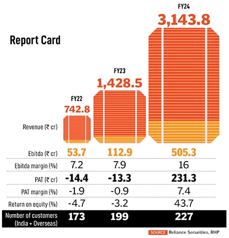 In its earnings for the September-ended quarter, the company showed revenue and profit growth, with improved Ebitda and PAT (profit after tax) margins. Total revenue stood at ₹1,553 crore, up from ₹701 crore in September 2023. Ebitda margins rose from 15.25 percent in September 2023 to 26.19 percent in September 2024. PAT, for the same period, increased from ₹52.85 crore to ₹206 crore.