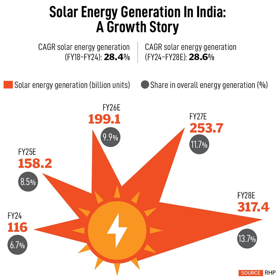 The project costs ₹3,200 crore, out of which around ₹1,000 crore primary raise was through the IPO and ₹2,200 crore delta is coming from the Indian Renewable Energy Development Agency (IREDA), says Chiranjeev. “With this project, our capacity will move from 2 GW to 7 GW solar cells, and from 4 GW to 8 GW modules."
