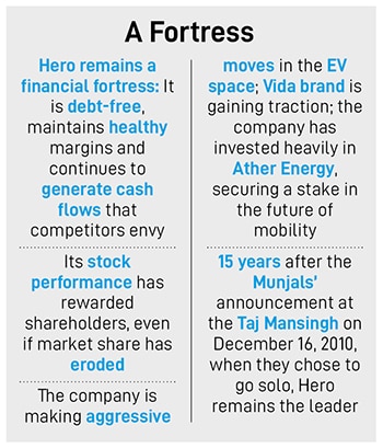 Hero’s magic did not vanish with Honda; it changed form. The company has proven it can withstand shocks that would have hobbled lesser firms. Fifteen years after the Munjals’ announcement at the Taj Mansingh on December 16, 2010, when they chose to go solo, Hero remains at the top. The company faces its share of pressures, but its sustained leadership is worthy of recognition.