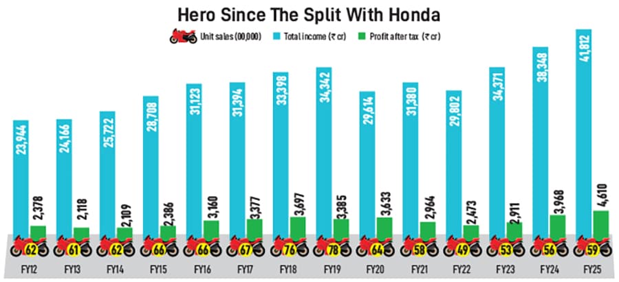A farmer in Madhya Pradesh, when asked in 2011 why he stuck with the brand after the split, said: “Gaadi Hero ki hai, chalti rahegi (The vehicle is Hero’s; it will keep running).” Faith carried the company forward.