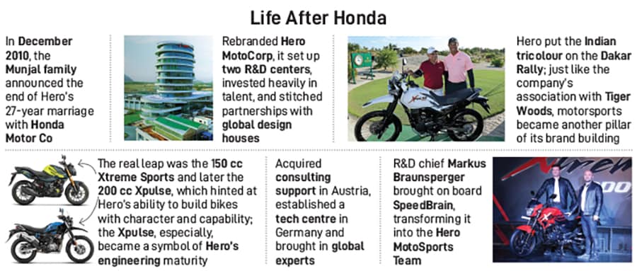 Hero set up two major R&D centres, invested heavily in talent and stitched partnerships with global design houses. It acquired consulting support in Austria, established a tech centre in Germany and brought in global experts.