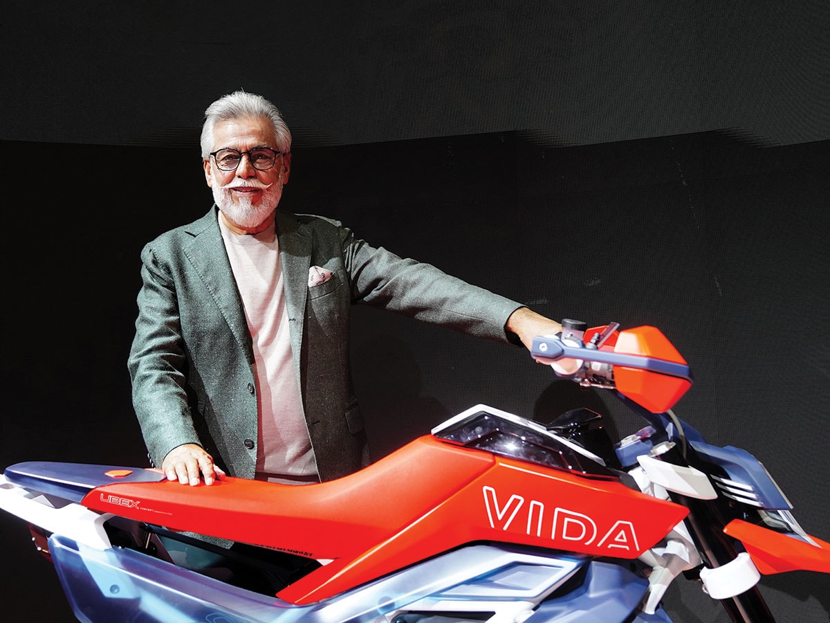Pawan Munjal with a Vida. The brand of scooters is gaining traction, occasionally overtaking rivals like Ola’s models in monthly sales in specific regions;