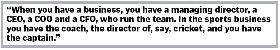 It isn’t. You learn about the sport in every way that you learn about any other business. And when you have a business, you have a managing director, a CEO, a COO and a CFO, who run the team. In the sports business you have the coach, the director of, say, cricket, and you have the captain. So, the decisions are fundamentally made by them. My role comes at the time of the auction, where you are trying to understand what are the gaps that you need to fill. And as an entrepreneur, you take that call—will you bid up to X for this player, or will you let them go at Y?