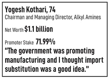 A chemical engineer—Kothari had worked for some time with elder brother Hemendra Kothari of DSP—he knew his heart always lay in a venture that made use of his skills as a chemist. “In those days, the government was promoting manufacturing, and I thought import substitution would be a good idea," says Kothari, the 74-year-old chairman and managing director of Alkyl Amines.