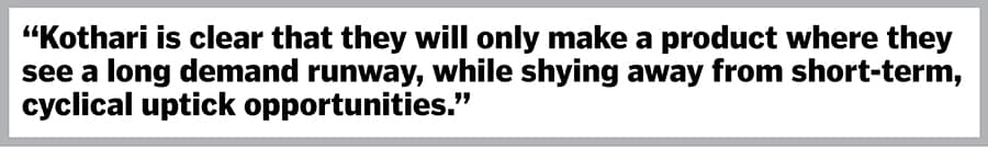 Unlike the startups of today, Kothari has set up a business that has a worldwide competitive edge. Also, unlike companies of today, he was very capital efficient and shunned the use of excessive leverage to gain market share. He’s also put in place an able second line of command to ensure the company stays on top of its game and grows ahead of the economy. In a world starved for growth that is all investors ask for.