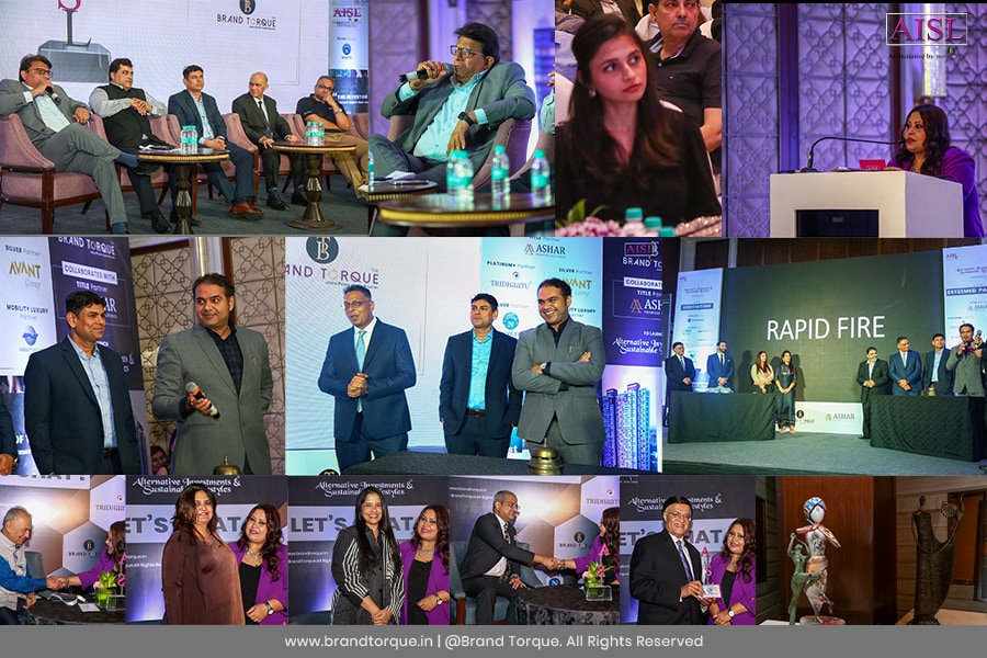 Left to Right( Top Row): Ajay Ashar(CMD- Ashar Group), Ayushi Ashar ( Director- Ashar Group),Dhananjay Sandu(Co- Founder & MD- Tridhaatu Realty),Sudeep Saha( CMD- Avant Group), Harish Shroff (Director-Nyati Group), and the brain behind AISL 2022( Alternative Investsments & Sustainable Lifestyles) Madhushree Dutta (Founder & CEO – Brand Torque LLP