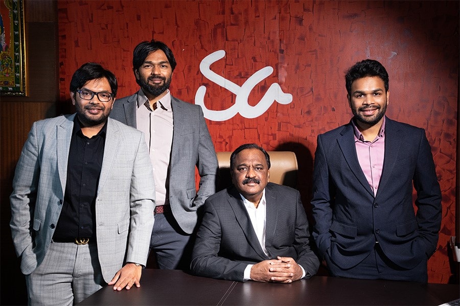 (From left to right) Agastya Sagar Veesamsetty - Executive Director, Anand Sagar Veesamsetty - Executive Director, (seated) Mr. Vidyasagar Veesamsetty - Managing Director, Ananth Sagar Veesamsetty - Executive Director