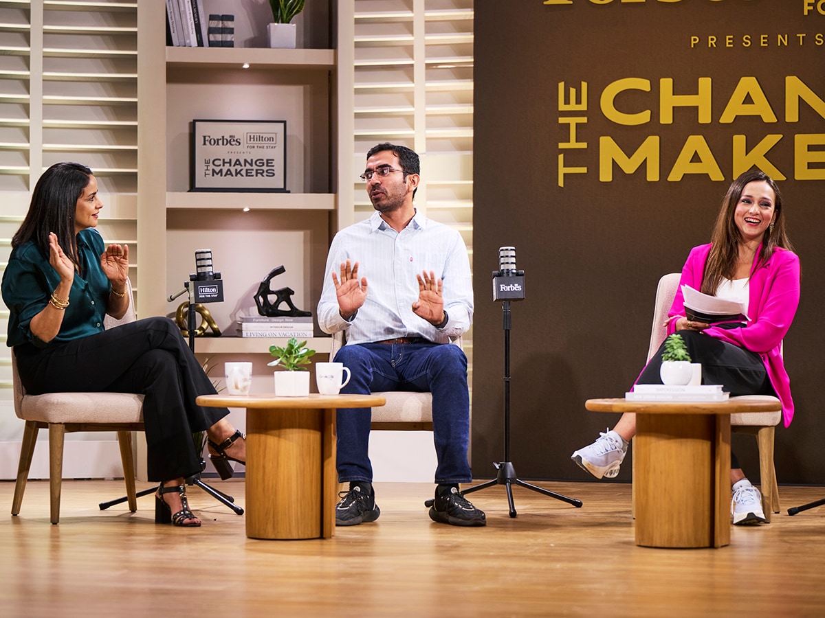 This episode of The Changemakers with Forbes India and Hilton brought together four trailblazing leaders— Gul Panag, actor, entrepreneur, and pilot Ragini Das, championing women’s professional networks Srikanth Bolla, redefining inclusive entrepreneurship and Pranjal Kamra, a pioneer in simplifying personal finance—to explore the evolving demands of leadership and share transformative insights from their journeys.