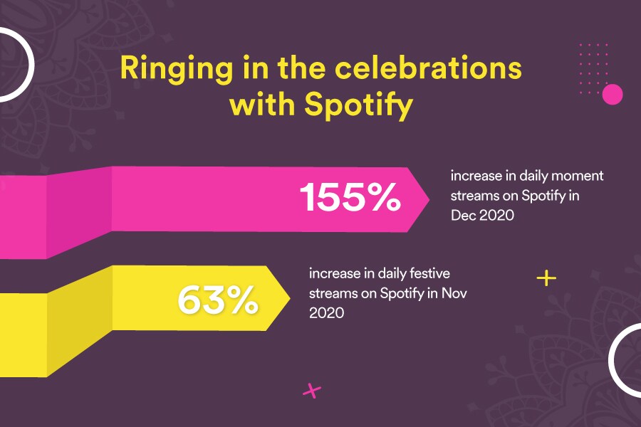 According to some previous estimates daily festive streams saw an increase of 63%, and occasion and activity based streams grew 155%. With music being an integral part of the celebrations, which bring friends and family together on Spotify, it is a platform that marketers can plug into to reap dividends.