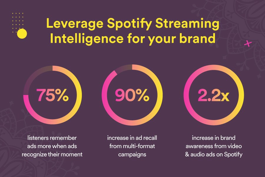 Spotify is privy to billions of hours of listening data from users across the country. This lets the company to derive actionable insights about consumer behaviour to recommend songs, among other things, through what is called “Streaming Intelligence". This also helps brands make their communication more relevant, engaging, and meaningful. For instance, in a survey, it was found that 75% of Spotify listeners remember ads more when the messages recognise their moment or setting. This sensory combination extends the marketers’ creative options.