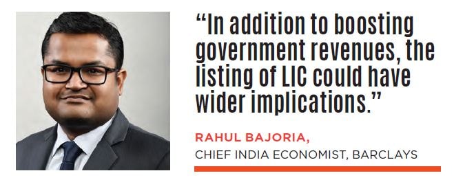 Rakshit is not the only one who thinks the government is set to miss its target. Rahul Bajoria, chief India economist at Barclays, says, “We expect a shortfall of ₹50,000 crore on the divestment front. The proposed divestment of Life Insurance Corporation of India (LIC) remains the elephant in the room, and if it does not go through, the shortfall could be even wider."