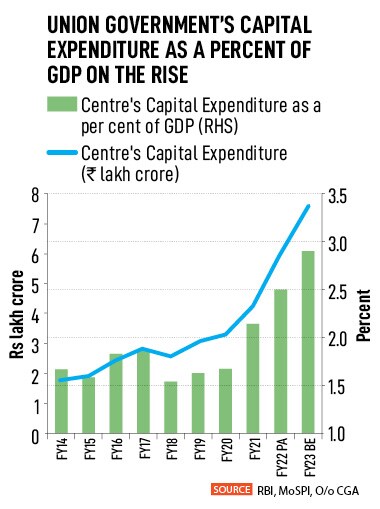 At the same time there has been a concerted effort to push the creation of physical infrastructure, much like the Golden Quadrilateral project in the early 2000s. Capital expenditure as a percentage of GDP has risen from 1.9 percent in 2014 to 2.8 percent in the FY23 Budget estimates. This should lay a good platform for crowding in private investments in the coming decade.
