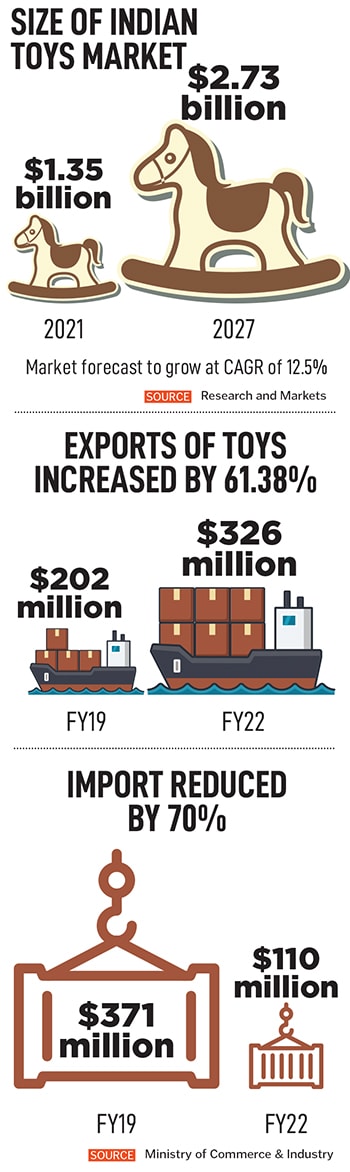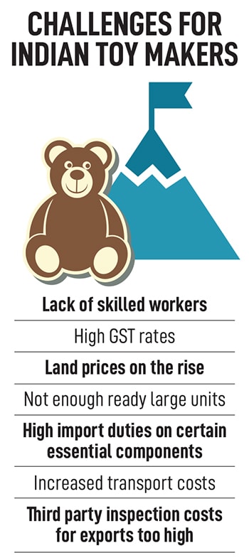 But the PLI scheme is likely to only be for toys, and not toy components. Isn’t that a disadvantage? “The toy industry doesn’t have any standardised components like one has in electronics. There is a huge variety when it comes to toys, and it also depends on seasonality (outdoor toys would sell more in summer, for example). It is impossible to give a PLI for toy components," explains Amit Chakraborty, president of the toys division, Aequs, one of the largest toy exporters in the country.