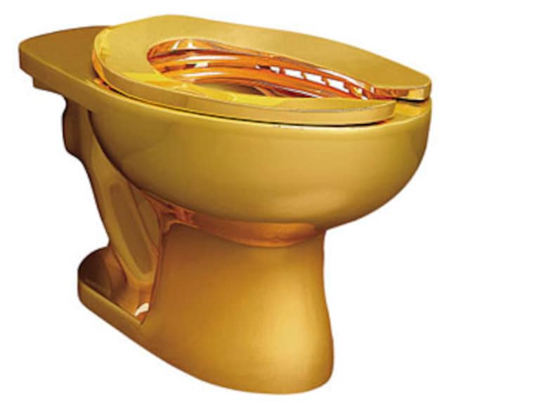 There’s now one more place to sit down in New York’s Guggenheim Museum: Italian artist Maurizio Cattelan has created an 18-karat-gold toilet for one of its bathrooms. The 55-year-old Cattelan is renowned for his irreverent works: His statue of a hand giving the middle finger stands in front of Milan’s stock exchange, and when art collector Peter Brant commissioned him to create a sculpture of his supermodel wife, Stephanie Seymour, Cattelan delivered a nude bust inspired by hunting trophies. (Cattelan produced it in an edition of three so other men could also have a trophy wife.) As for Cattelan’s new gold throne—a sly art-historical wink to ‘Fountain’, the signed urinal Marcel Duchamp created in 1917—Guggenheim visitors can either admire it from afar or express their opinion of the work in the most basic way: The toilet is functional.