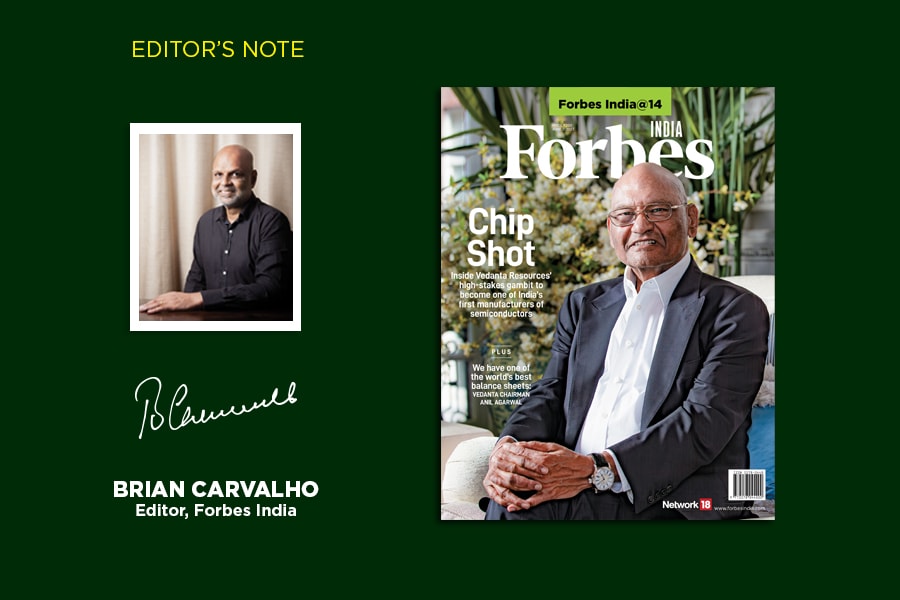 This issue is special because it marks the 14th anniversary of Forbes India, and it is only fitting that we packed it with exclusive coverage of Vedanta’s semiconductor gambit, complemented with an Agarwal interview. We will continue our celebrations with another very special issue next fortnight. Look out for it.
