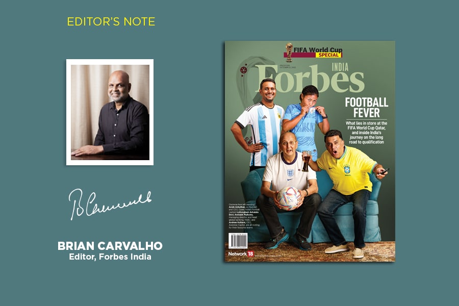 Forbes India’s edition this fortnight is an ode to the beautiful game, with the FIFA World Cup in Qatar a month away. The excitement is palpable and, as you will discover, has seeped into the Forbes India team, too. Madhu Kapparath takes us on a pictorial journey from 1930 when the first World Cup was played in Montevideo, Uruguay, and Samidha Jain zeroes in on the players to watch out for at Qatar from November 20.