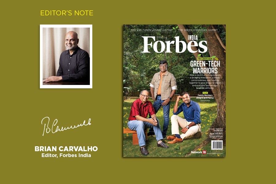 This fortnight in our Climate Special, Forbes India shines an eco-friendly light on ventures that are doing their bit to reduce emissions and address the impacts of climate change. On the cover are founders/co-founders of three of the startups Divya Shekhar has profiled that are seeking to make significant environmental and social impact.
