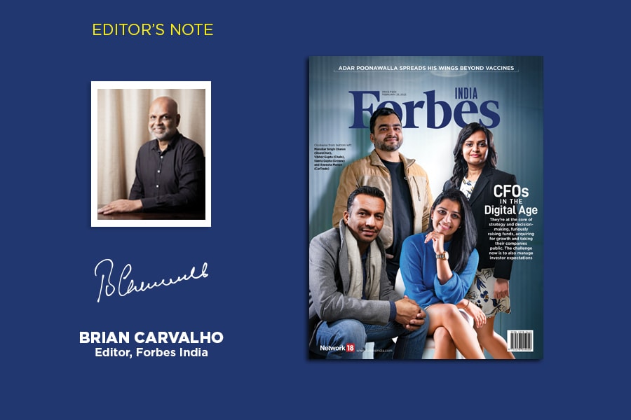 The Forbes India cover story this fortnight is on the new breed of CFOs at companies that were once—some still are—early-stage tech startups. They have reached a stage where the founders cannot by themselves do all the heavy lifting. Enter the CFO (although a clutch of co-founders has taken on the finance mantle). As Rajiv Singh, who’s helmed this package on India’s digital CFOs, says, their mandate is different in many ways, the biggest variance being the way they look at the P&L (profit and loss), which for many is a case of little P and a lot of L. The challenge for the CFOs of a few of the listed new-age businesses would be to convince IPO investors about their path to profitability and in the process lift their stocks from below the offer price they have sunk to. I won’t reveal any more here, turn to page 22 to read about India’s New-Age CFOs.