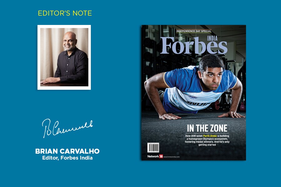 The man on the cover of Forbes India is the third gen of a family whose patriarch, OP Jindal, started producing steel in the early 1950s to make India self-reliant. Parth Jindal’s version of nation-building involves creating sporting champions, with a rare blend of business and sports acumen. The 34-year-old Harvard MBA and an avid and competitive cricketer, footballer, table tennis and squash player in his younger days, founded JSW Sports in 2012—and with it a Sports Excellence Programme to support promising athletes and the Inspire Institute of Sport (IIS) to train talent across five Olympic disciplines.