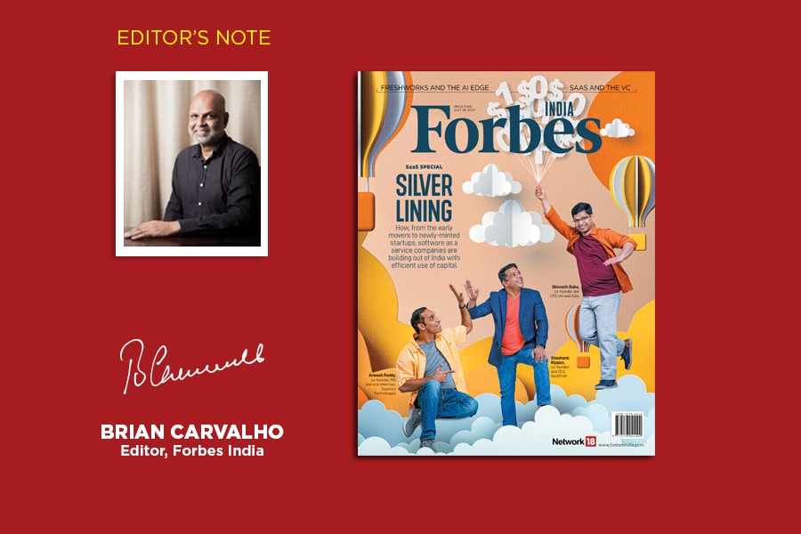 This fortnight, Forbes India’s Technology Editor Harichandan Arakali shines a light on the prospects of the SaaS sector even as the developed world grapples with threats of a recession. Arakali’s prognosis for Indian SaaS is bright. That’s because a clutch of SaaS startups, stirred by the headway made by early birds like Zoho, Freshworks and Capillary Technologies are, as he puts it, “perfecting the playbook of building software in India and selling it to America. And the current slowdown in the global economy will only serve to sharpen their focus".