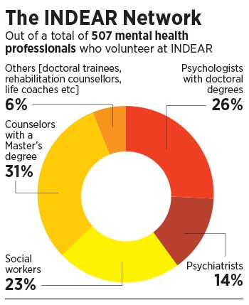 Not everyone stayed on, but currently, INDEAR has 507 mental health professionals volunteering for it. This includes both South Asian and non-South Asian mental health professionals, including psychologists with doctoral degrees, psychiatrists, social workers, people with a Master’s degree in counselling or related fields, apart from doctoral trainees, rehabilitation counsellors, life coaches, or people who have experience working with disaster relief efforts.