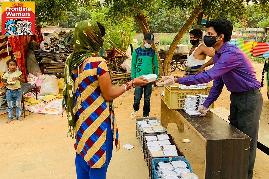 Agarwal, who works from 7.30 in the morning to 4.30 in the evening as an ontologist with software development firm GlobalLogic, has only a few hours a day to devote to his NGO. He starts around 5 am, procuring milk packets and distributing them before his shift. During his lunch break, he helps a friend with packing rations and attends to calls related to the NGO. Soon after his shift, he steps out to distribute cooked meals and ration packets.