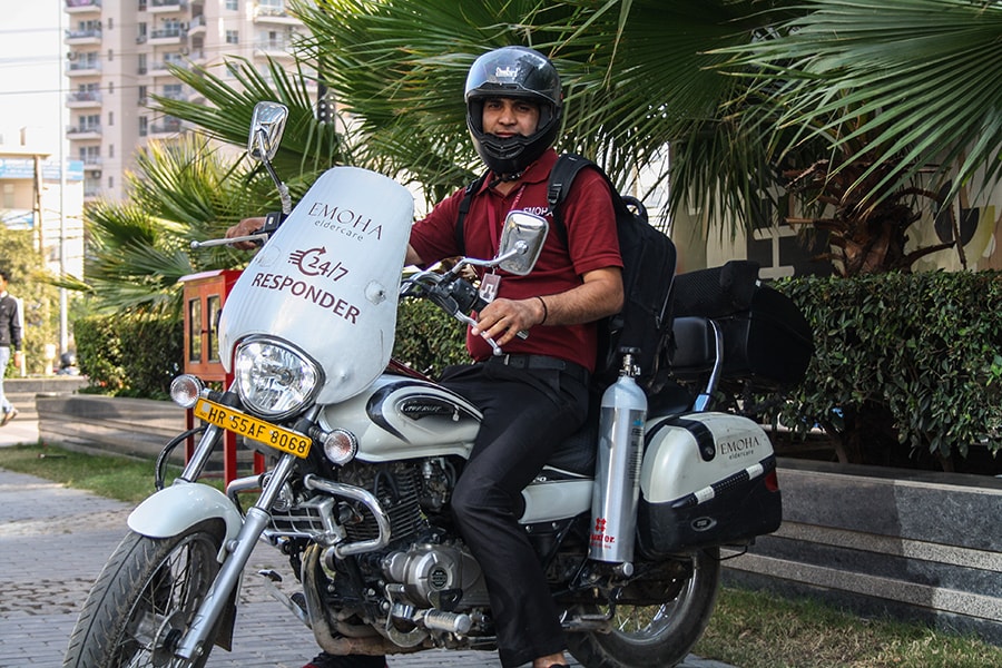 Emoha"s first responder, usually an ex-defence personnel, is trained to attend to accidents, perform CPR and offer first-aid. They have helped save about 40 lives in the past three weeks