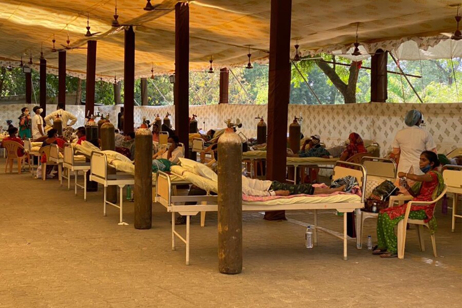 A temporary field hospital outsideShree Krishna Hospital in Gujarat"s Anand district