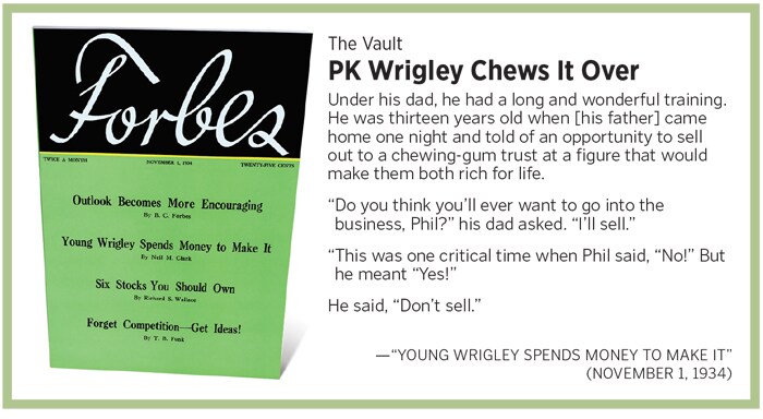 Wrigley was born into one of America’s great business dynasties. His namesake great-grandfather, William Wrigley Jr, started William Wrigley Co in 1891 as a manufacturer of soap but pivoted in 1893 to produce Wrigley’s chewing gum instead. The company was handed down through the generations, and Beau’s father ran it until the day he died, in March 1999. Beau, who started working at the company over his summer break when he was 13, was 35 years old when he became CEO and chairman the day after his father passed away.