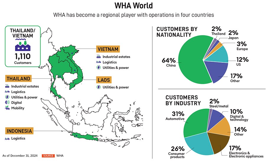That could be another speed bump for WHA, which faced one in 2024 when it sold 410 hectares of land, a drop from 443 hectares the previous year. Some of that was taken up by Google, which is investing $1 billion to establish cloud and data centre infrastructure, and by Chinese appliance maker Haier, for a 10-billion-baht factory to make air conditioners.