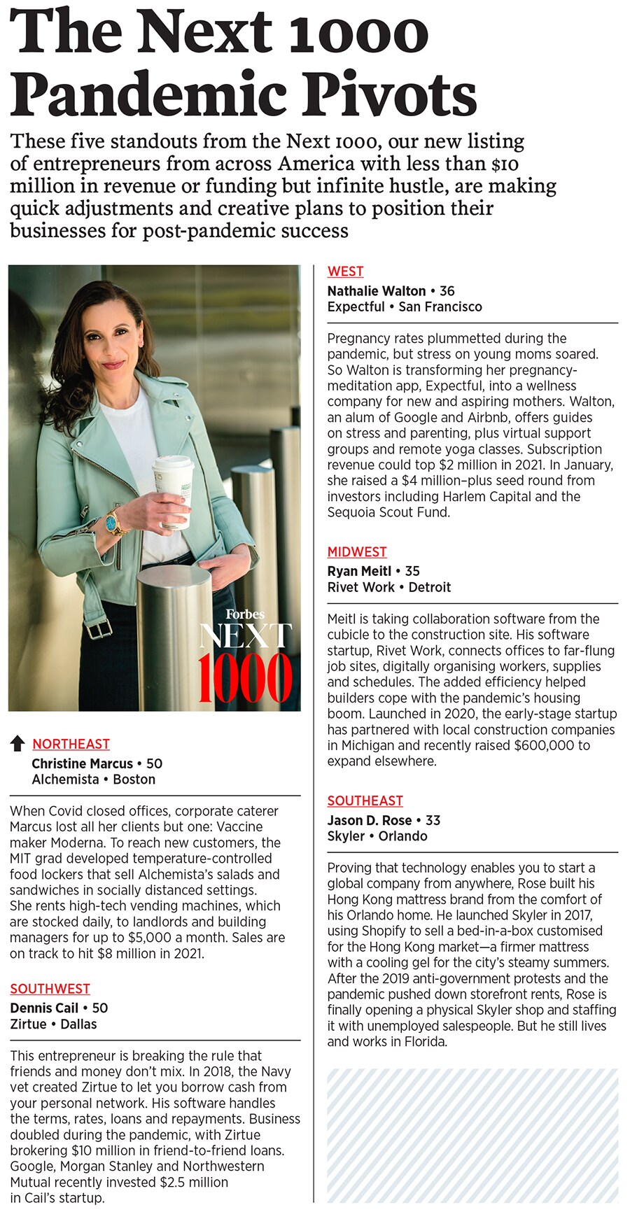And the most significant spikes in these job-creating businesses are happening far from expensive coastal hubs. Instead, the deep South is driving the boom, with triple-digit growth across Georgia, Mississippi, Alabama and Louisiana. To spotlight this upcoming, diverse, entrepreneurial generation, Forbes is launching the Next 1000, a reader-nominated list of small-business founders, scattered across America, with less than $10 million in funding and revenue. Businesses like these drive the economy, employing more than 30 million Americans.